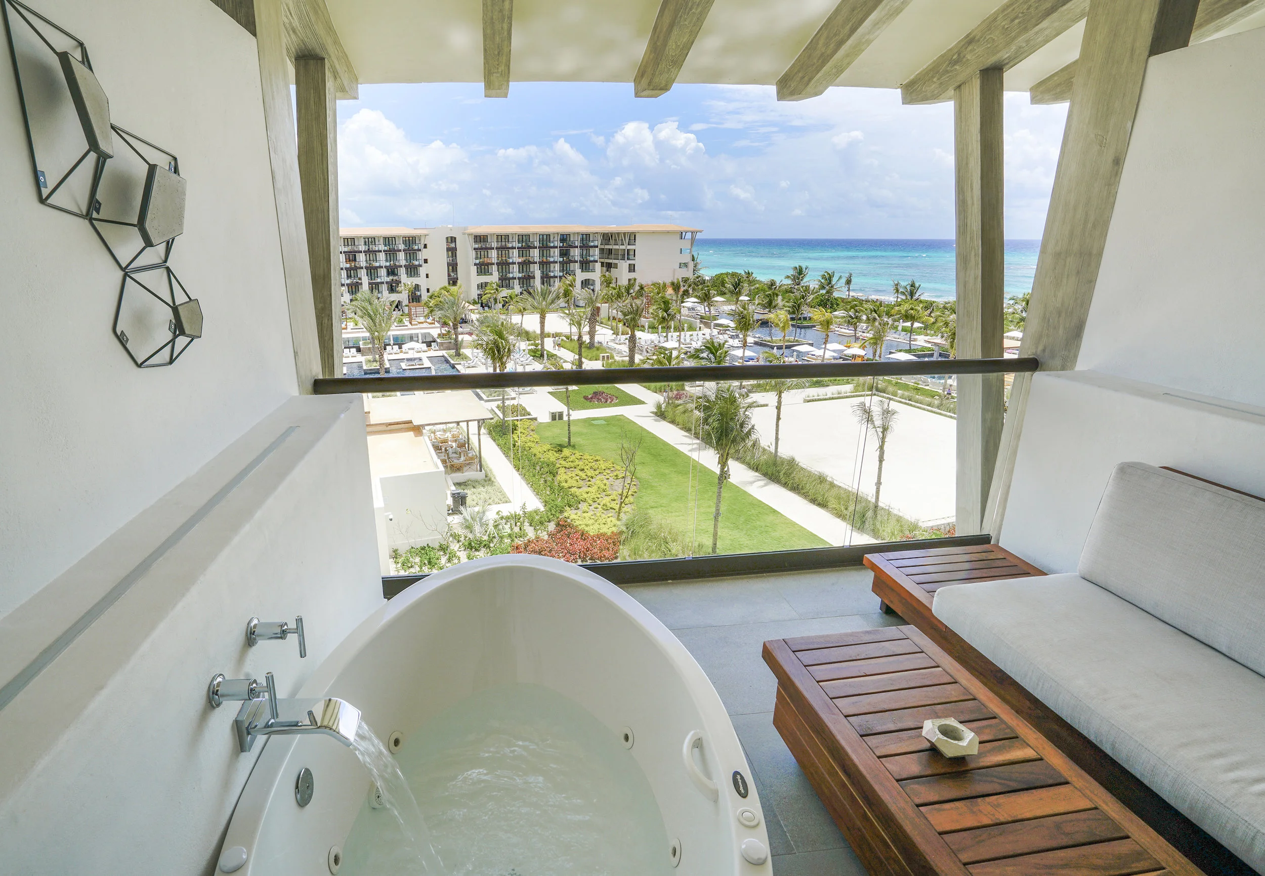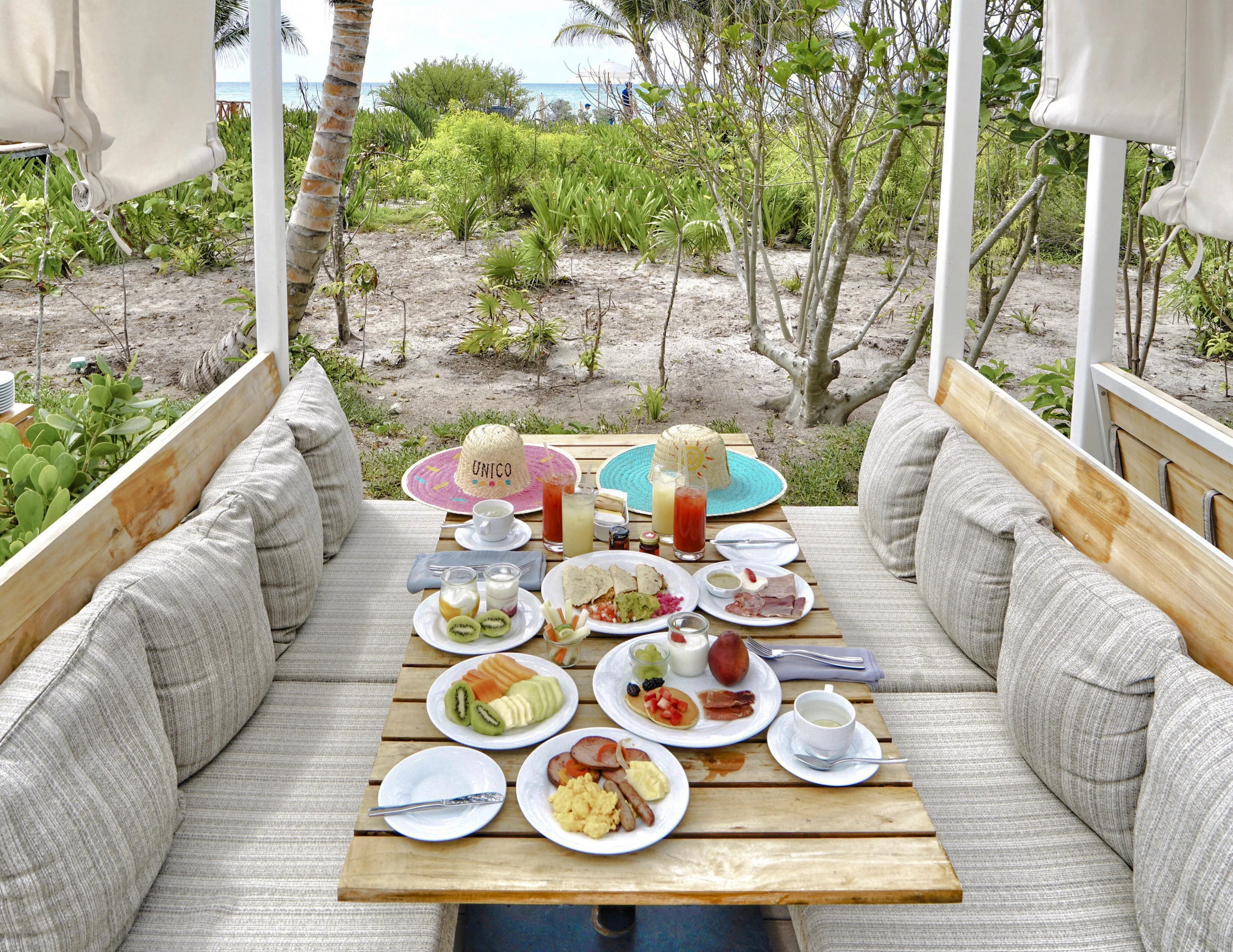There are 8 types of different category room types to choose from, most of which have views either facing the ocean or the well-designed main courtyard. Most rooms have a balcony for an in - out unique experience. All rooms and suites are fairly spacious, since it is a newly opened property in 2017, all the furnishing is clean and comfortable. Room decoration is a mix of modern luxury and rustic inspired from the rich history of this Mexican region. Most of the art and accent pieces are designed by local artists to differentiates UNICO from other luxury hotels.